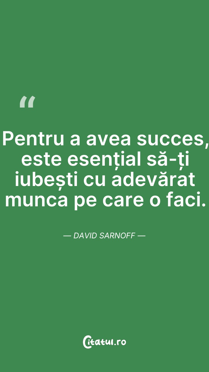 Nimeni nu poate avea succes daca nu isi iubes ... Citește tot citatul >