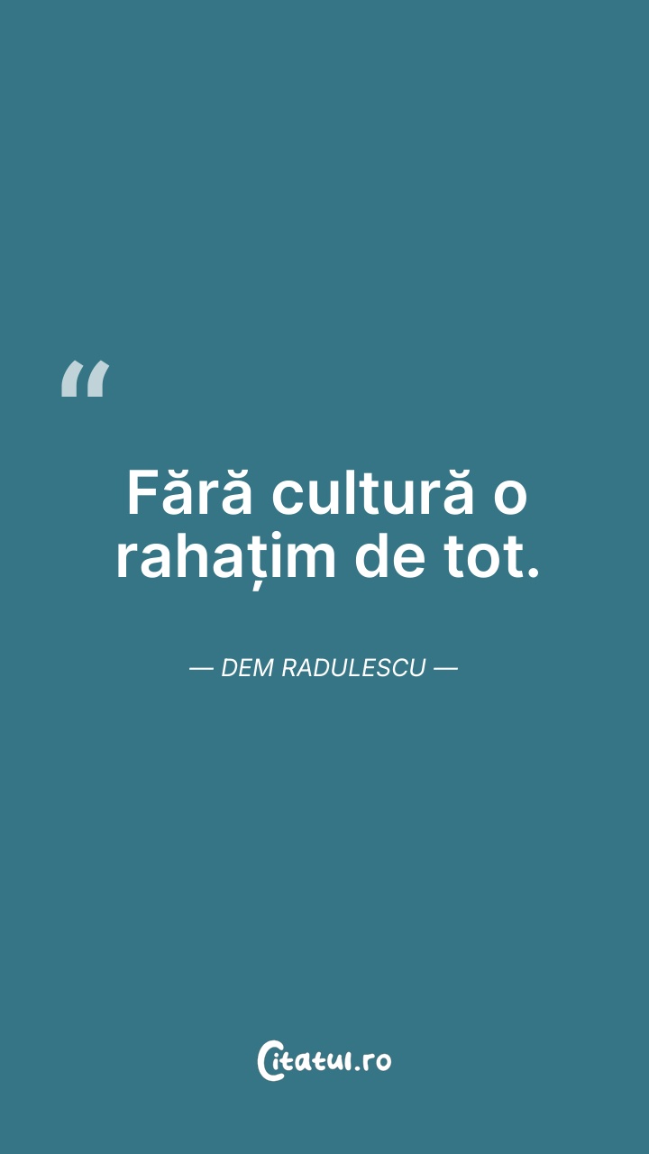 Fără cultură ο rahațim de tot. Dem Radulescu