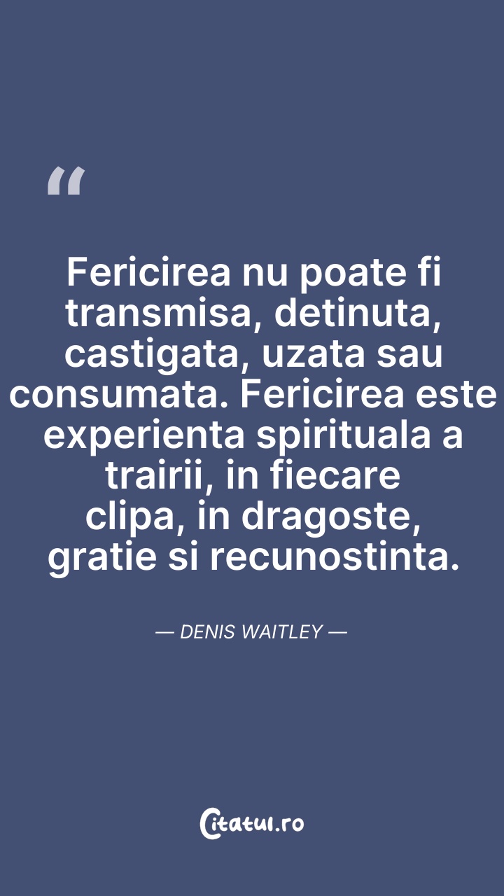 Fericirea nu poate fi transmisa, detinuta, ca ... Citește tot citatul >