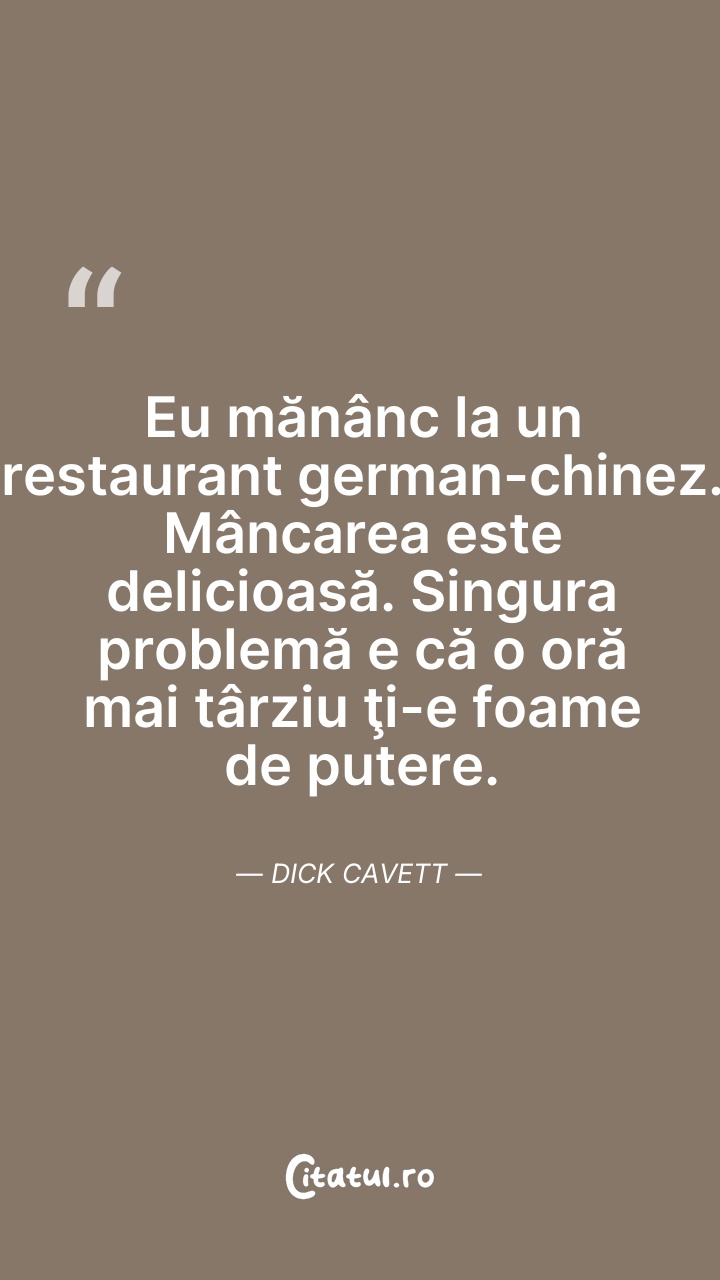 Eu mănânc la un restaurant german-chinez. Mân ... Citește tot citatul >