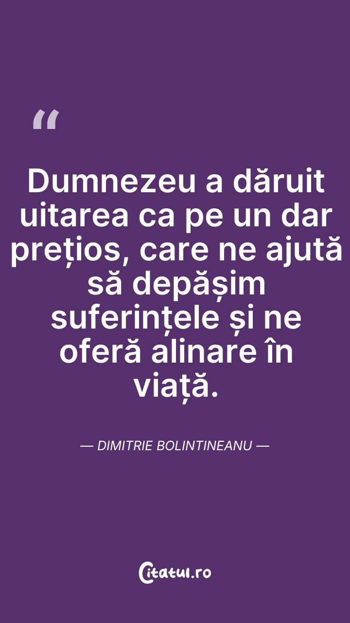 Dumnezeu a dăruit uitarea ca pe un dar prețio ... Citește tot citatul >