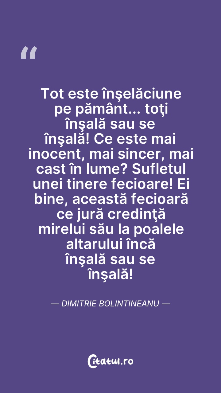 Tot este înşelăciune pe pământ... toţi înşală ... Citește tot citatul >