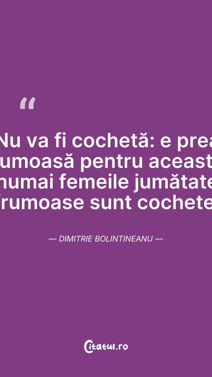 Nu va fi cochetă: e prea frumoasă pentru acea ... Citește tot citatul >