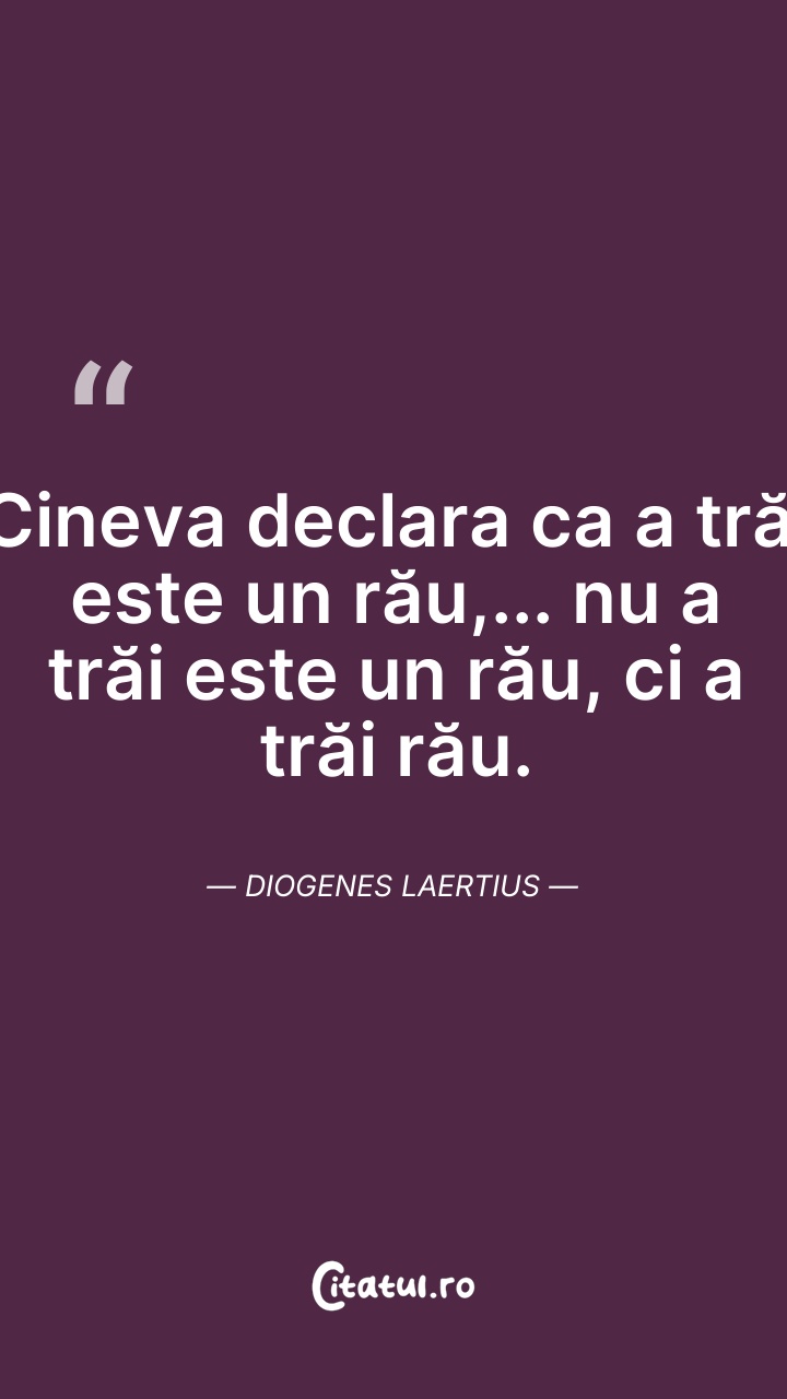 Cineva declara ca a trăi este un rău,... nu a ... Citește tot citatul >