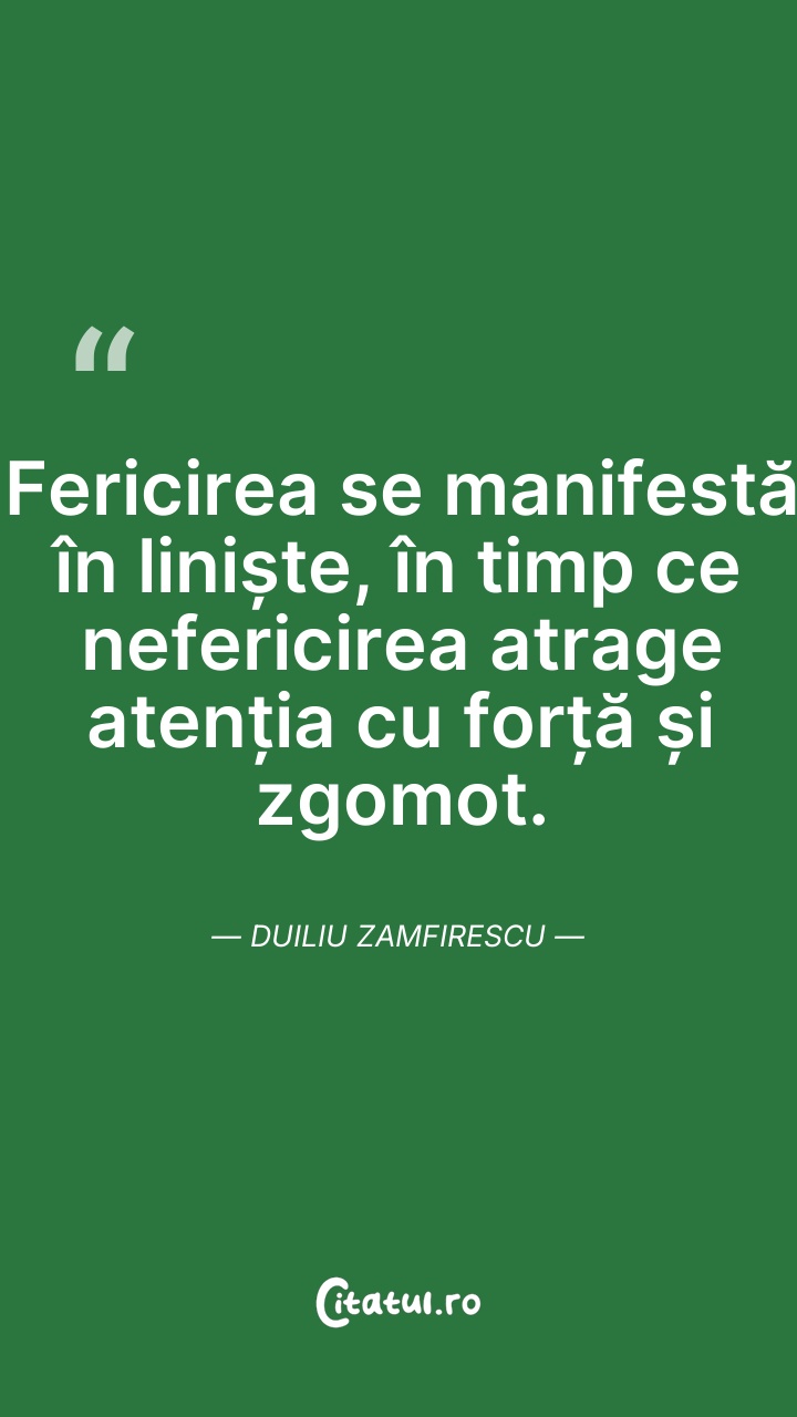 Fericirea se manifestă în liniște, în timp ce ... Citește tot citatul >