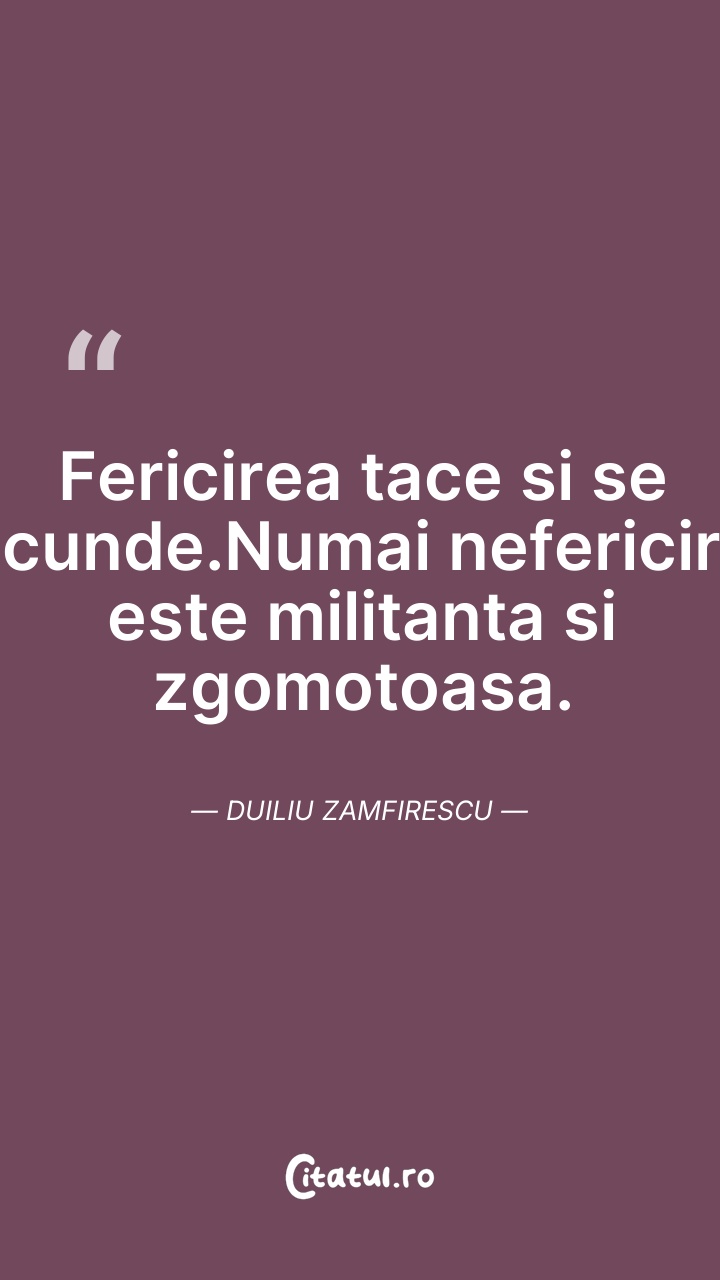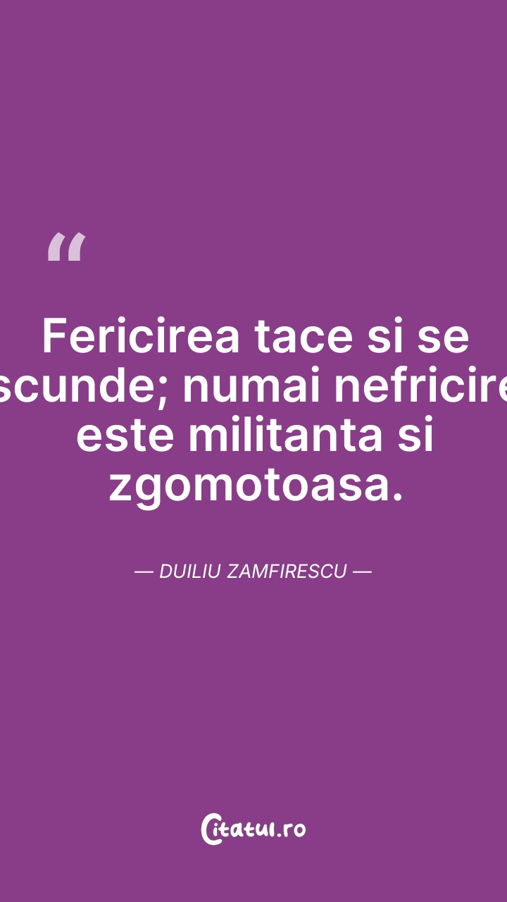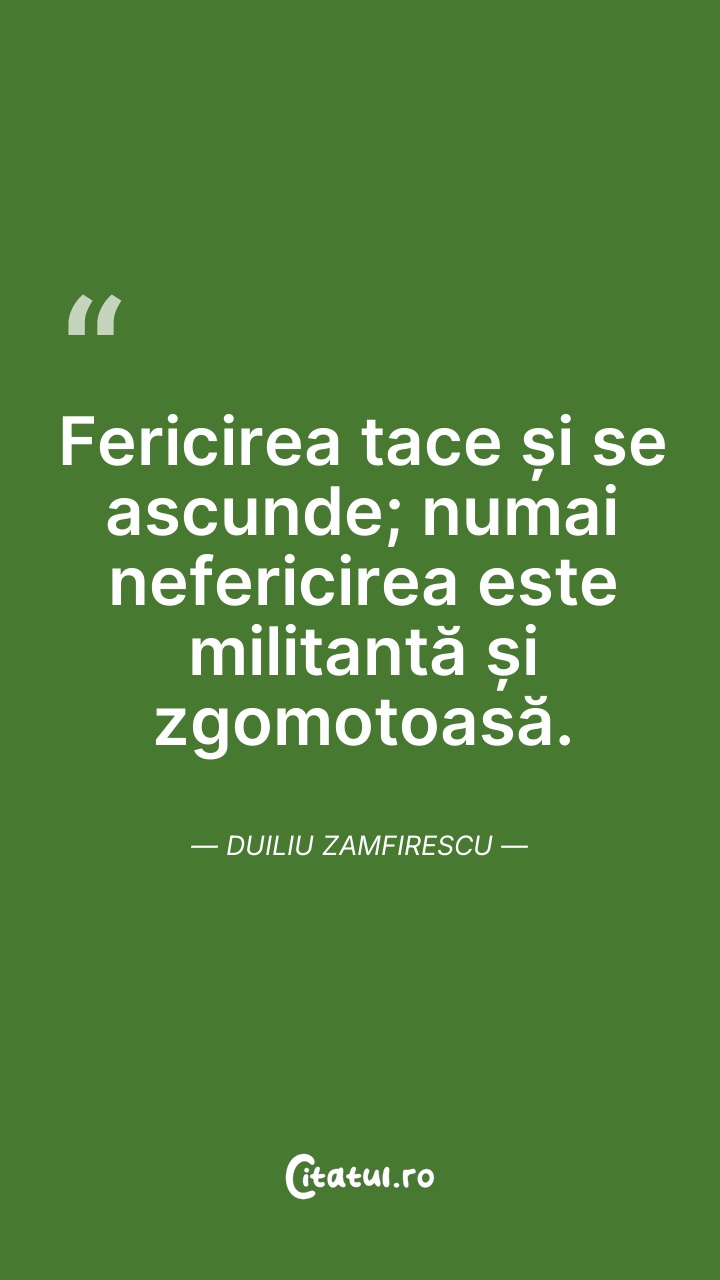 Fericirea tace și se ascunde; numai nefericir ... Citește tot citatul >
