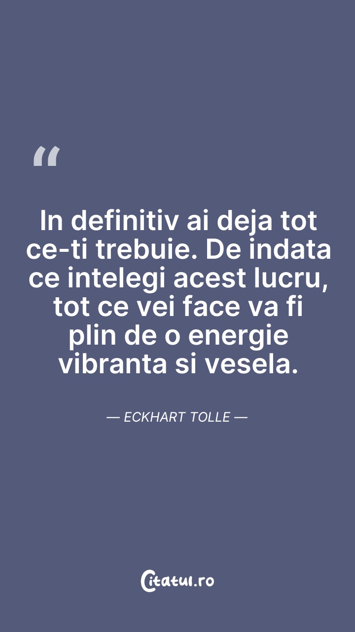 In definitiv ai deja tot ce-ti trebuie. De in ... Citește tot citatul >