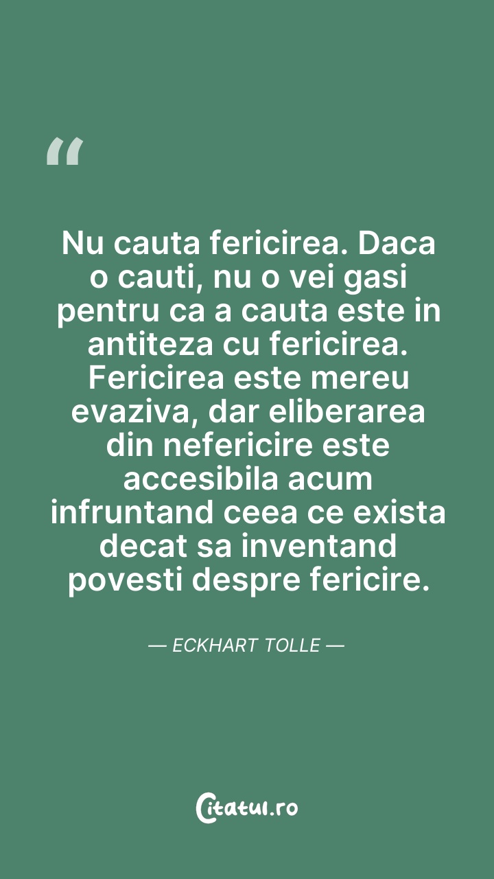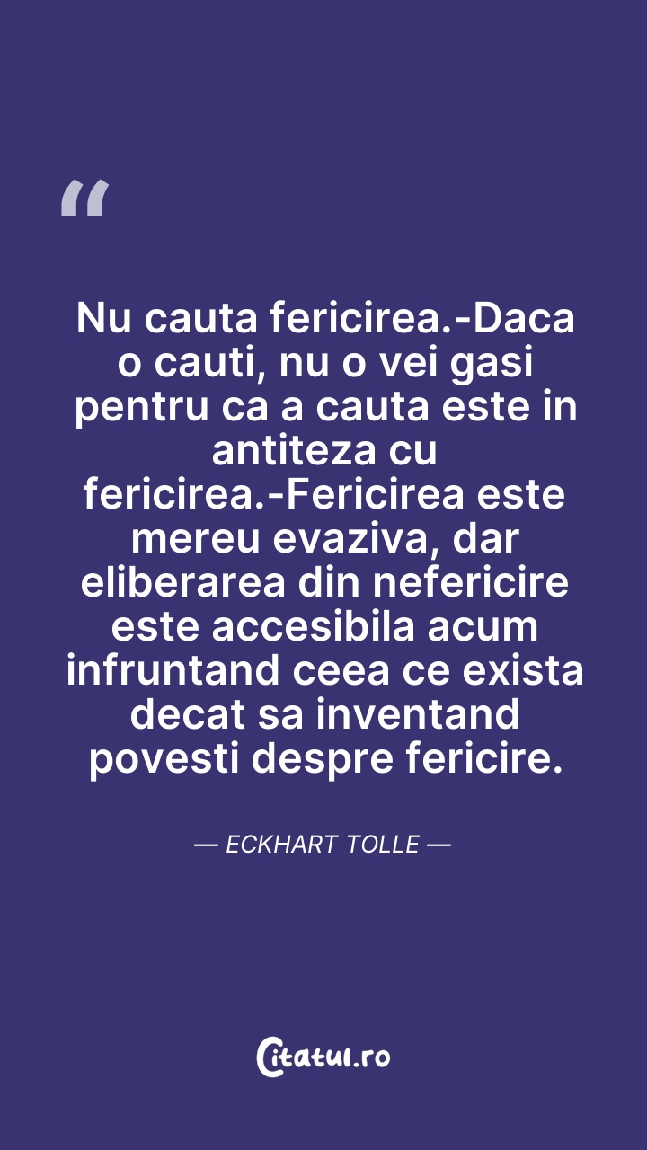Nu cauta fericirea. Daca o cauti, nu o vei ga ... Citește tot citatul >