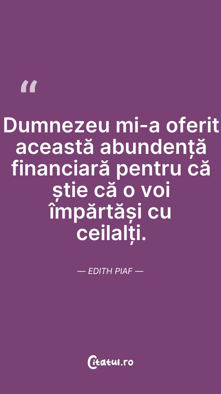 Dumnezeu mi-a oferit această abundență financ ... Citește tot citatul >