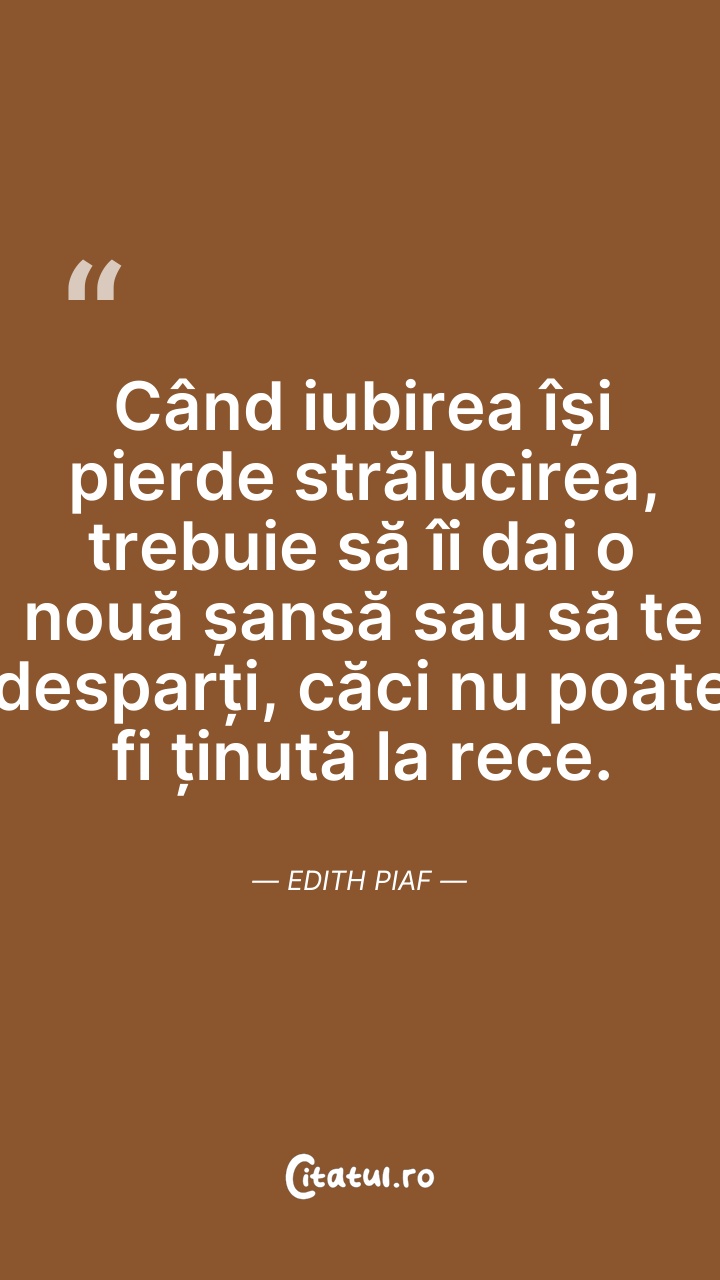 Când iubirea își pierde strălucirea, trebuie ... Citește tot citatul >