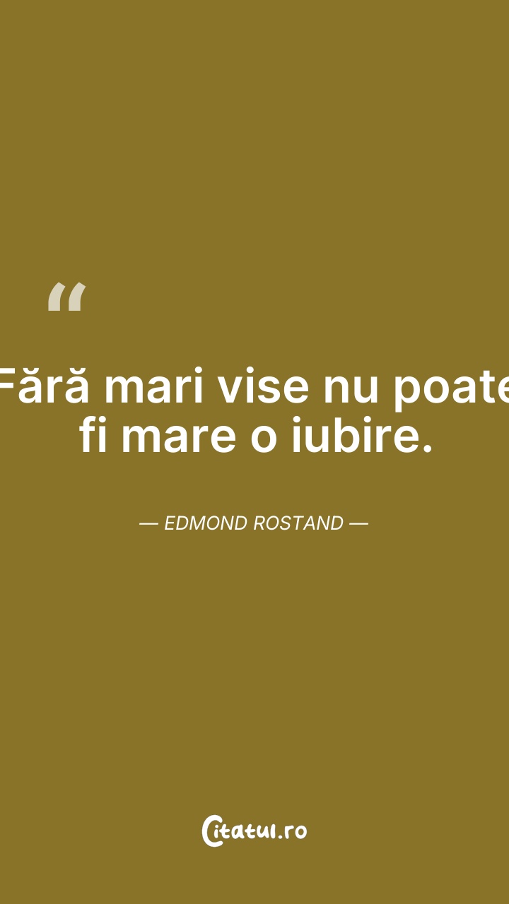 Fără mari vise nu poate fi mare o iubire. Edm ... Citește tot citatul >