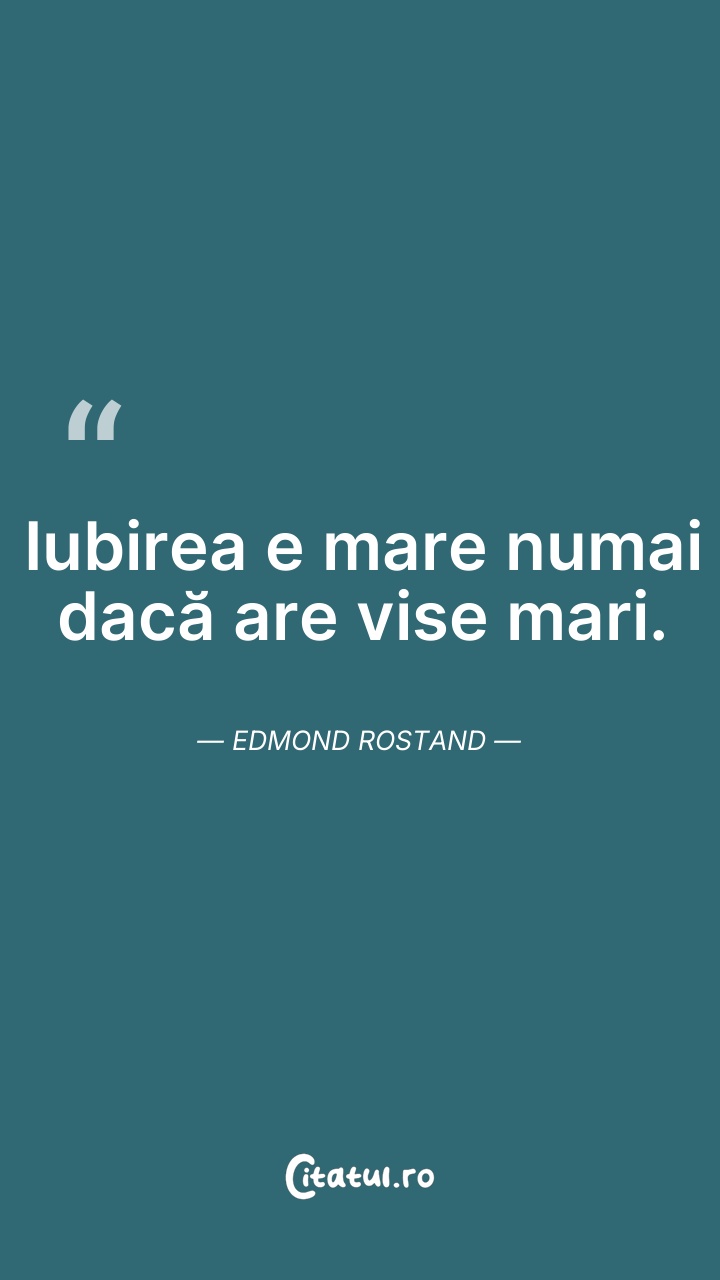 Iubirea e mare numai dacă are vise mari. Edmo ... Citește tot citatul >