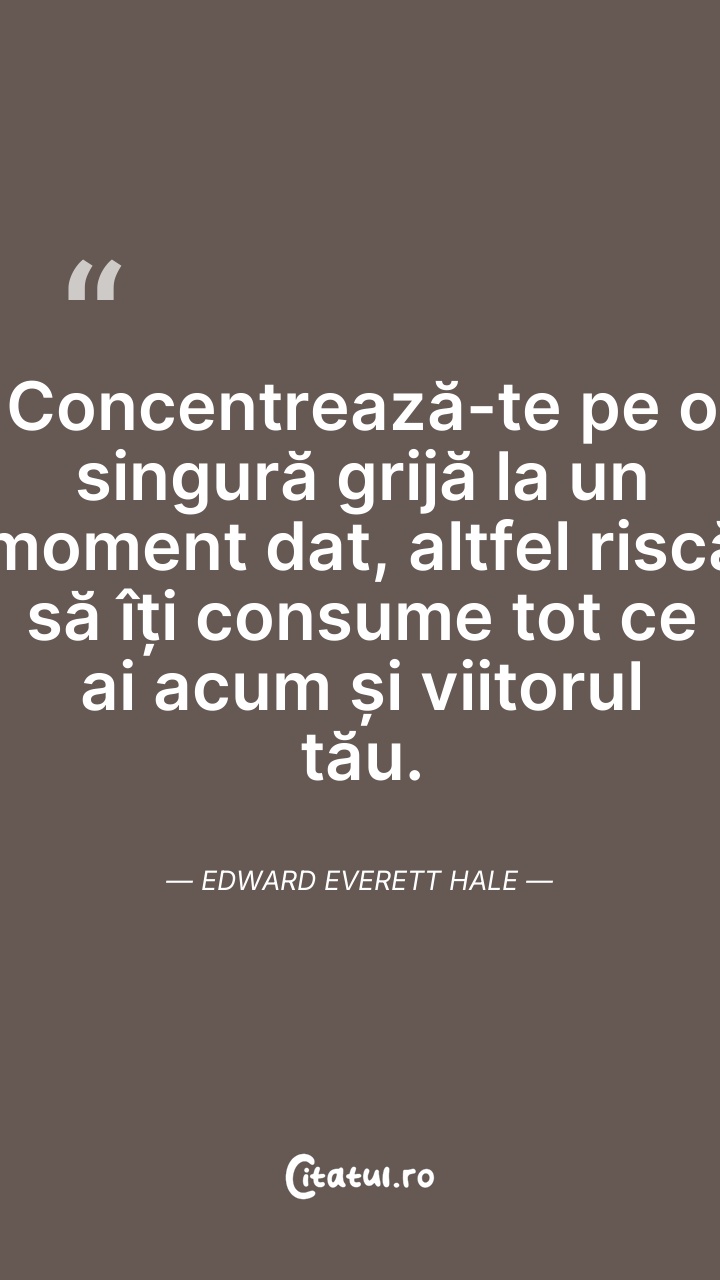 Concentrează-te pe o singură grijă la un mome ... Citește tot citatul >