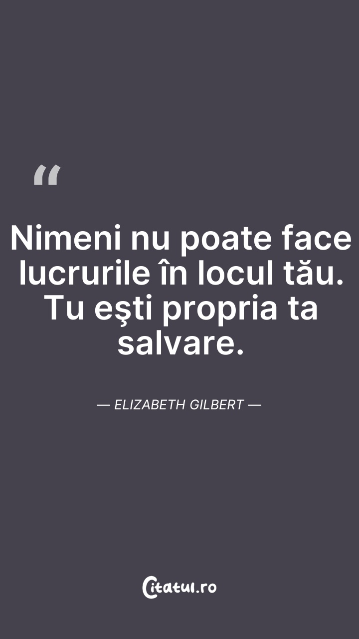 Nimeni nu poate face lucrurile în locul tău. ... Citește tot citatul >