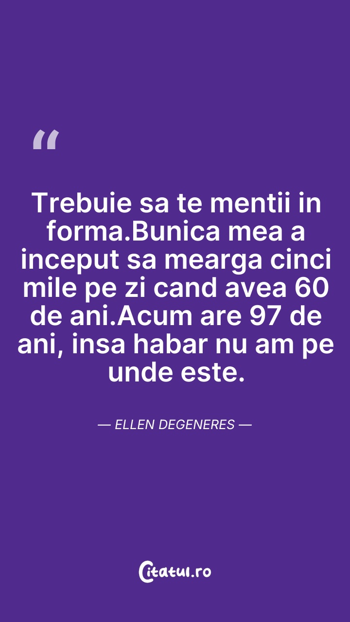 Trebuie sa te mentii in forma.Bunica mea a in ... Citește tot citatul >