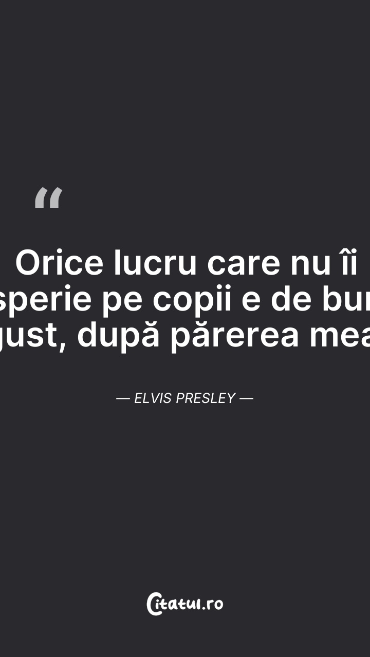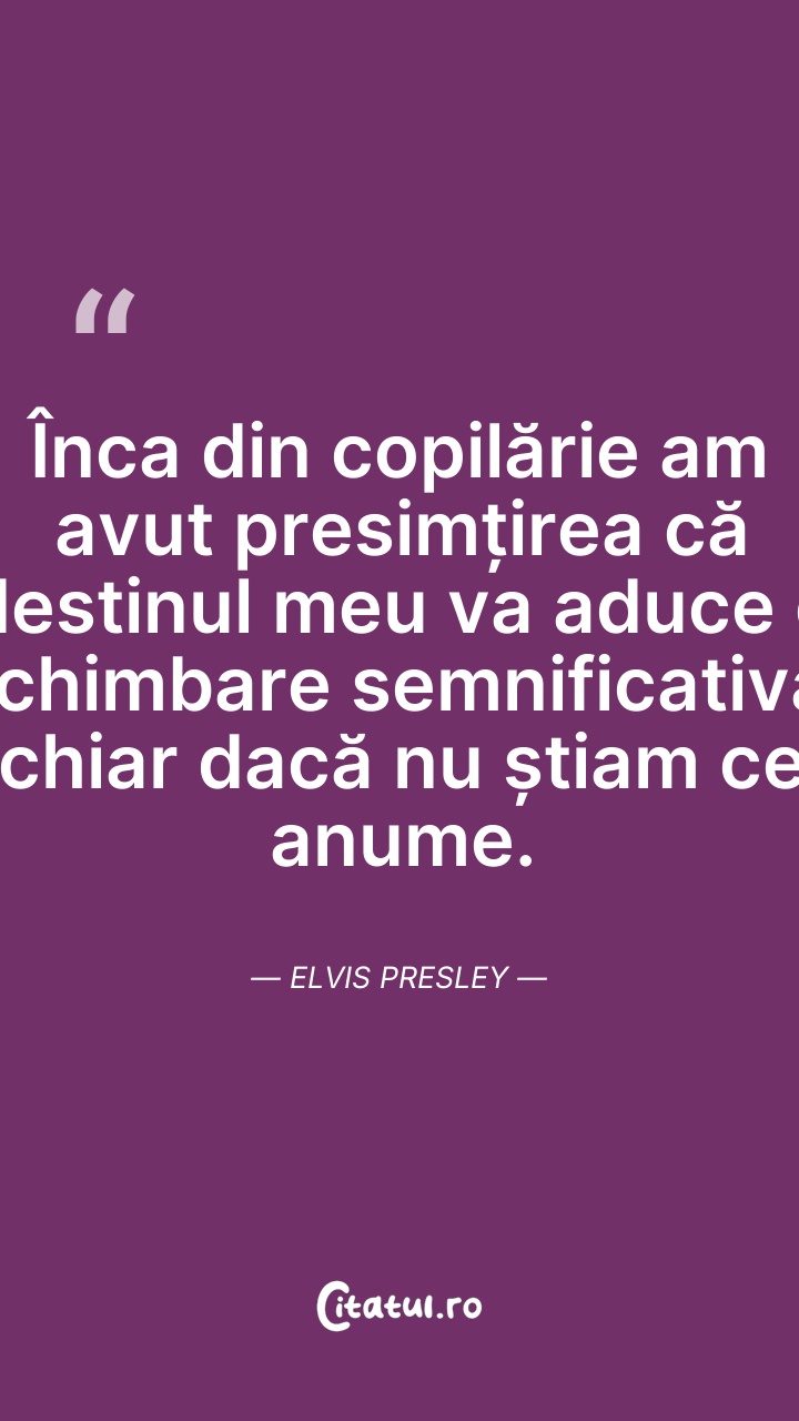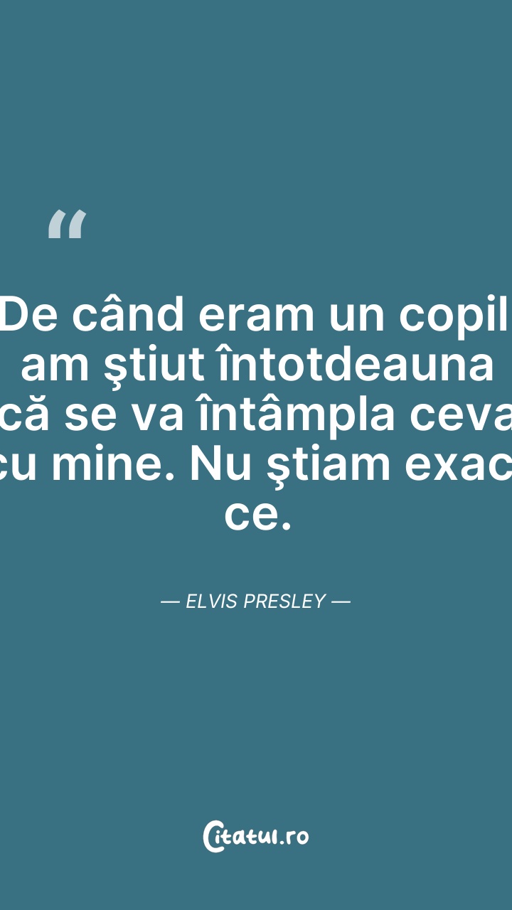 Elvis Aaron Presley a fost un cântăreț și actor american, cunoscut frecvent ca Regele Rock 'n' Roll-ului sau simplu, The King, cu toate ca a obținut și trei premii Grammy pentru muzică Gospel.