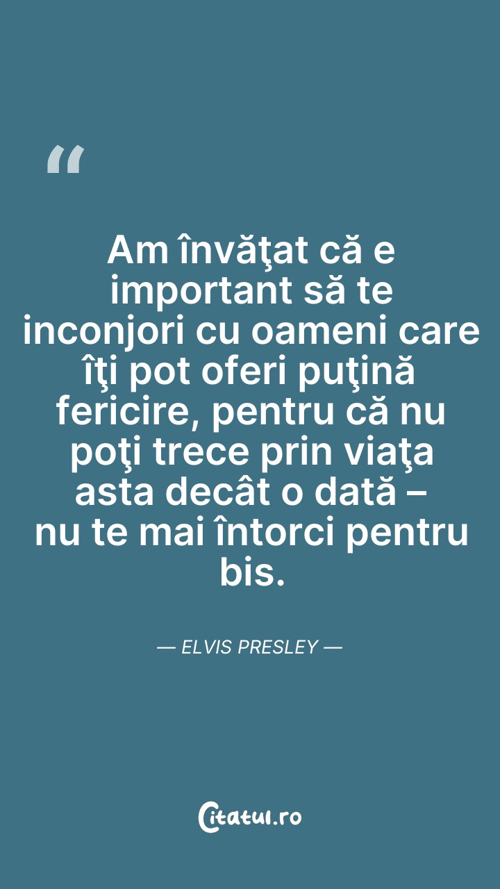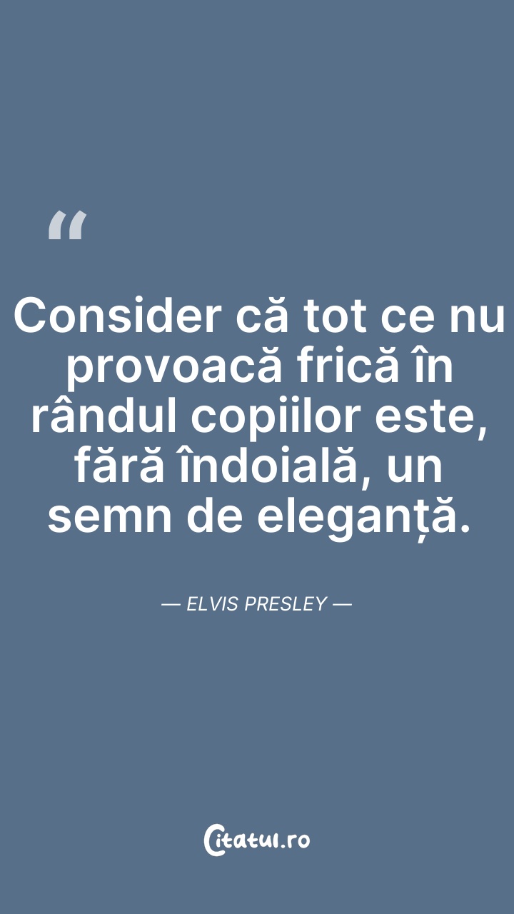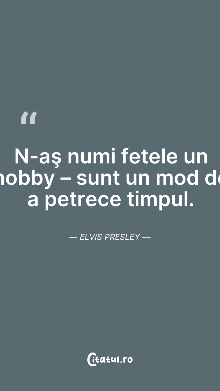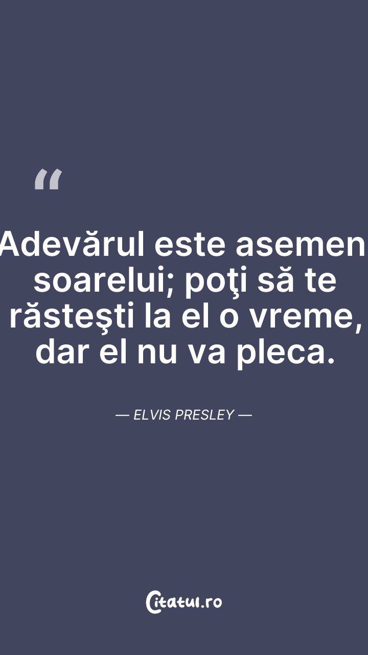 Elvis Aaron Presley a fost un cântăreț și actor american, cunoscut frecvent ca Regele Rock 'n' Roll-ului sau simplu, The King, cu toate ca a obținut și trei premii Grammy pentru muzică Gospel.
