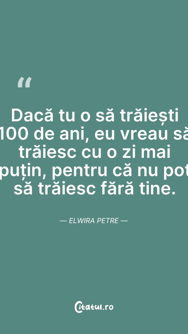 Dacă tu o să trăiești 100 de ani, eu vreau să ... Citește tot citatul >