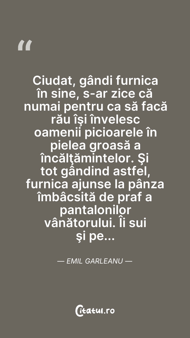 Ciudat, gândi furnica în sine, s-ar zice că n ... Citește tot citatul >