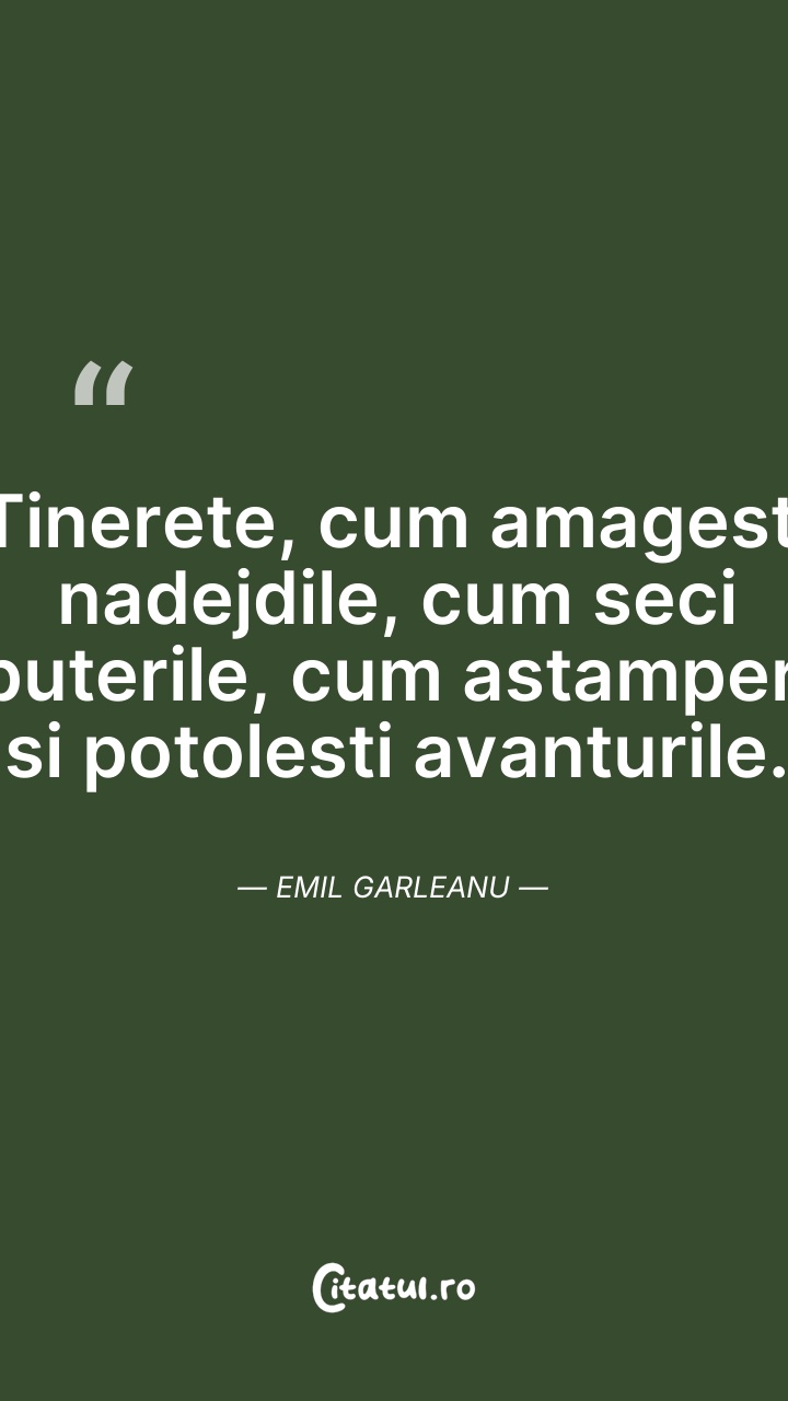 Tinerete, cum amagesti nadejdile, cum seci pu ... Citește tot citatul >
