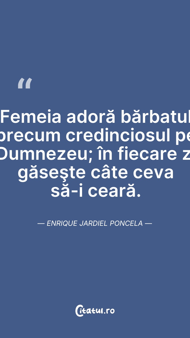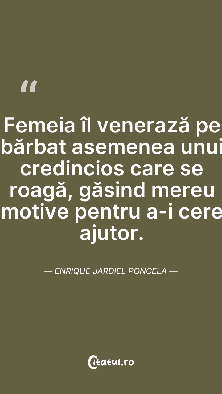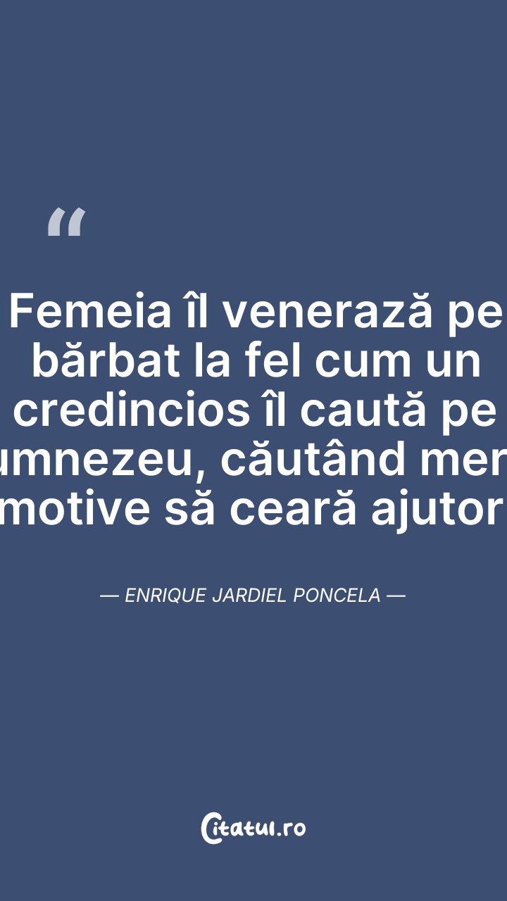 Femeia îl venerază pe bărbat la fel cum un cr ... Citește tot citatul >