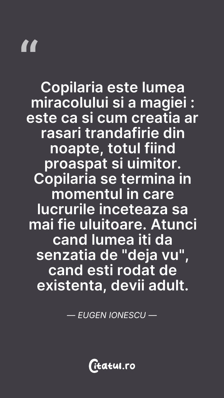 Eugen Ionescu, cunoscut în afara României sub numele de Eugène Ionesco, conform ortografiei franceze, a fost un scriitor de limbă franceză originar din România, protagonist al teatrului absurdului și membru al Academiei Franceze. Obișnuia să declare că s-a născut în anul 1912, ori din pură cochetărie, ori din dorința de a crea o legătură între nașterea lui și moartea marelui său precursor Ion Luca Caragiale.