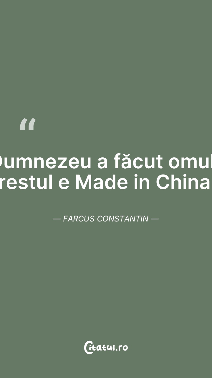 Dumnezeu a făcut omul , restul e Made in Chin ... Citește tot citatul >