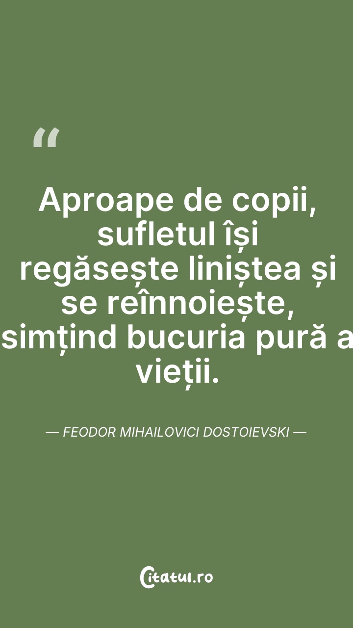 Aproape de copii, sufletul își regăsește lini ... Citește tot citatul >