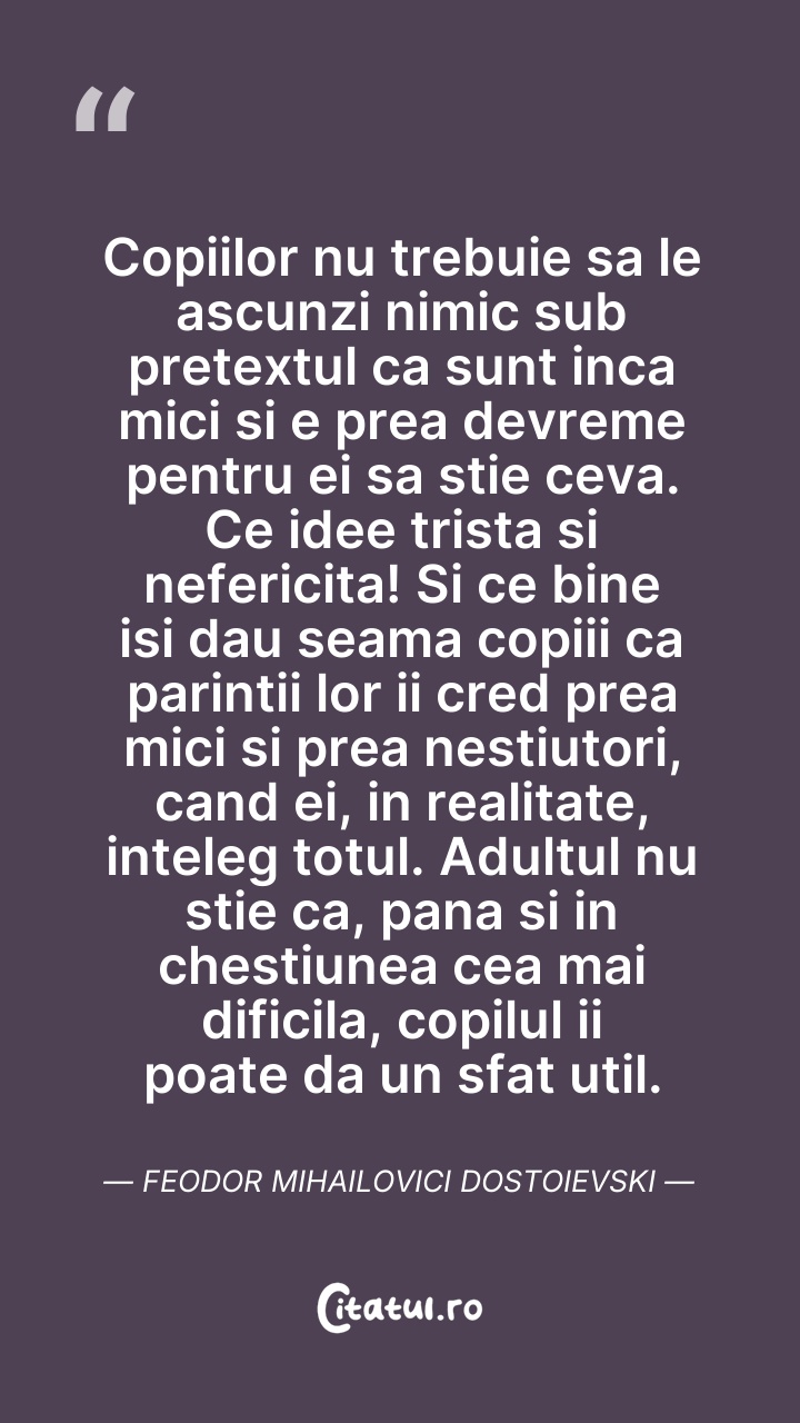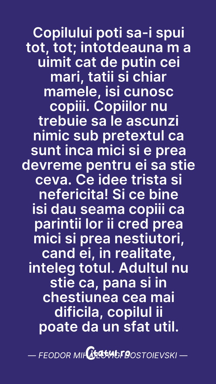 Copilului poti sa-i spui tot, tot; intotdeaun ... Citește tot citatul >