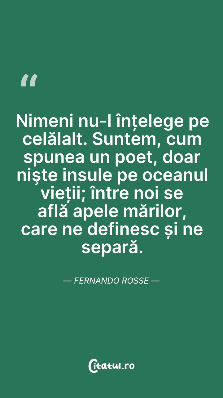 Nimeni nu-l înțelege pe celălalt. Suntem, cum ... Citește tot citatul >