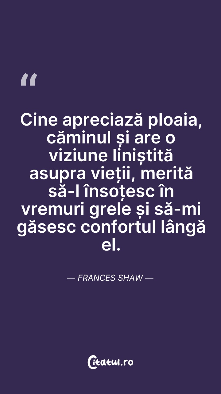 Cine apreciază ploaia, căminul și are o viziu ... Citește tot citatul >