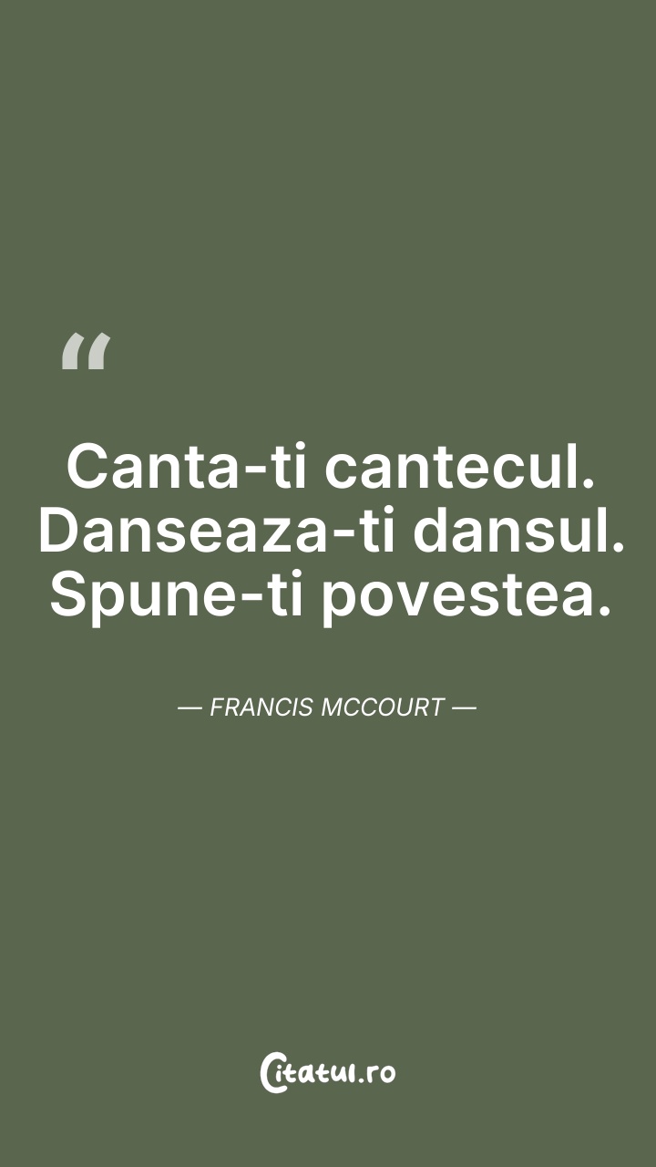 Canta-ti cantecul. Danseaza-ti dansul. Spune- ... Citește tot citatul >