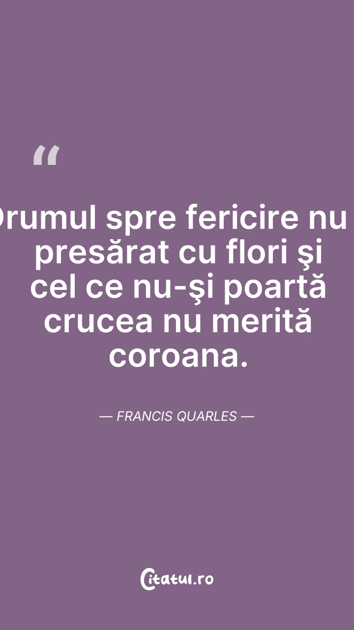 Drumul spre fericire nu e presărat cu flori ş ... Citește tot citatul >