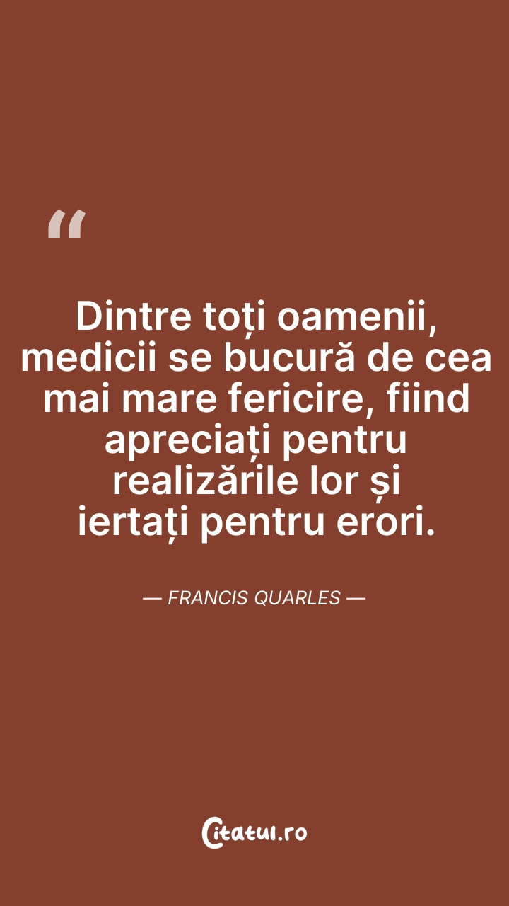 Dintre toți oamenii, medicii se bucură de cea ... Citește tot citatul >