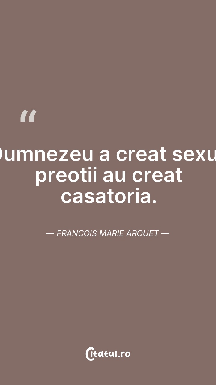 Dumnezeu a creat sexul.Preotii au creat casat ... Citește tot citatul >