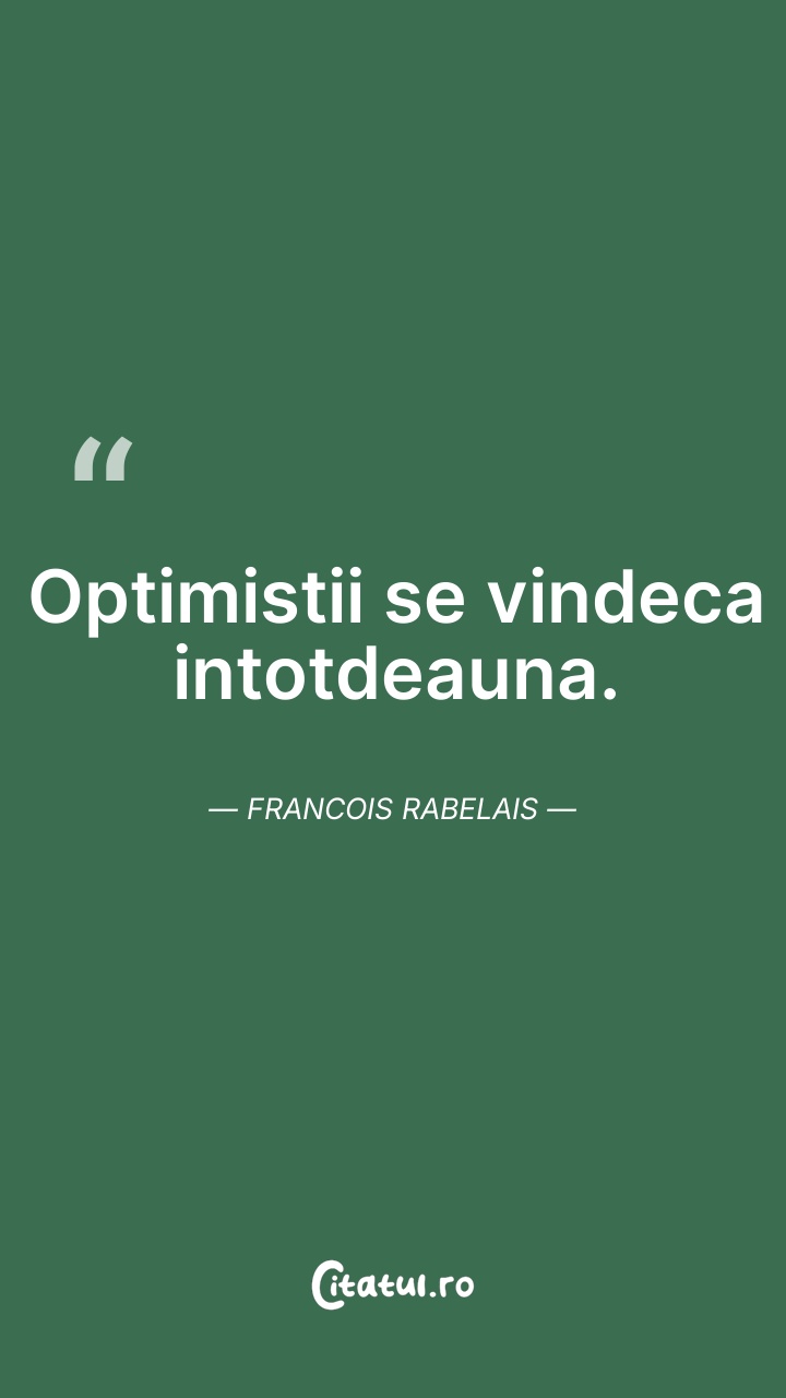 Optimistii se vindeca intotdeauna. Francois R ... Citește tot citatul >