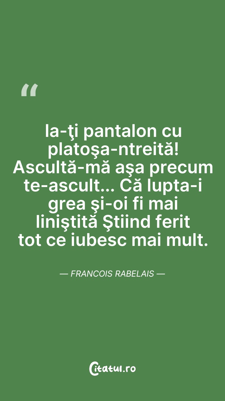 Ia-ţi pantalon cu platoşa-ntreită! Ascultă-mă ... Citește tot citatul >
