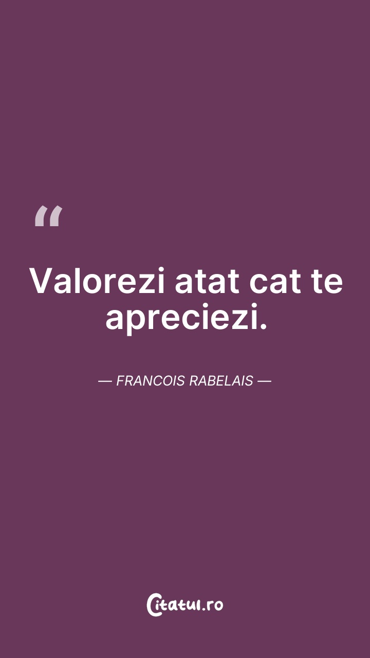 Valorezi atat cat te apreciezi. Francois Rabe ... Citește tot citatul >