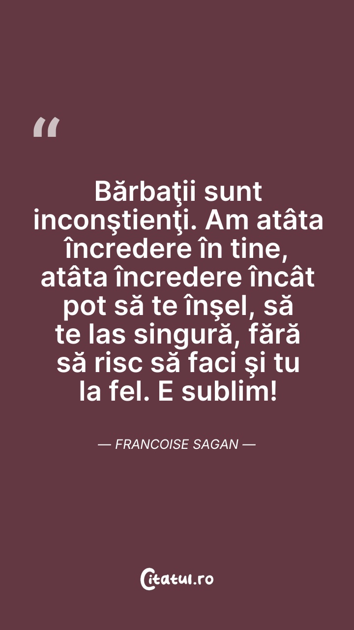 Bărbaţii sunt inconştienţi. Am atâta încreder ... Citește tot citatul >