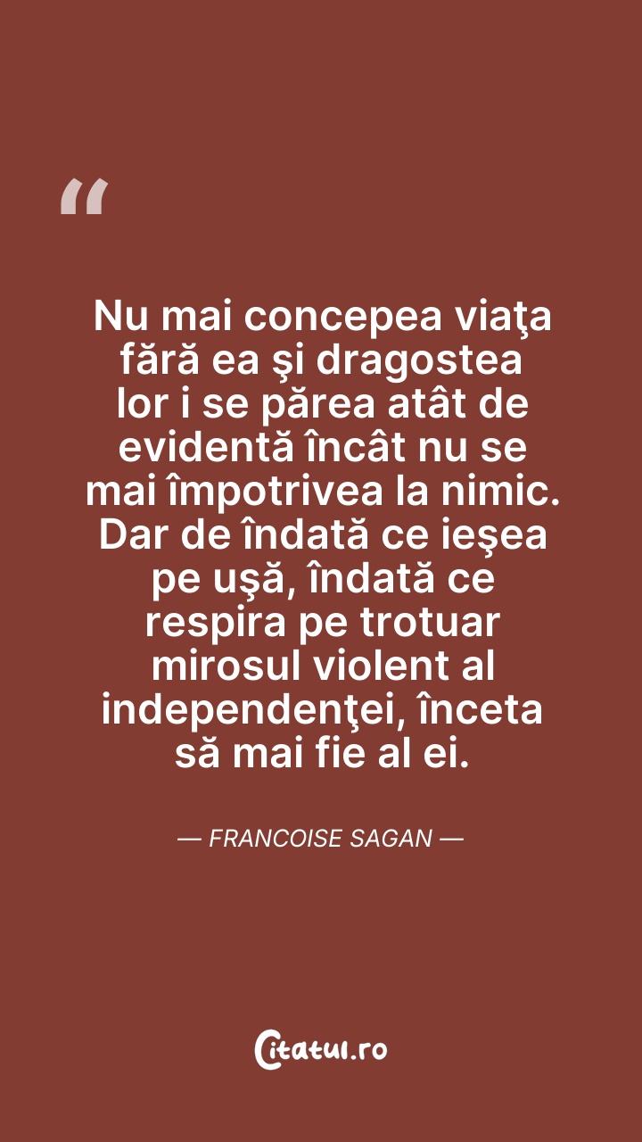 Nu mai concepea viaţa fără ea şi dragostea lo ... Citește tot citatul >