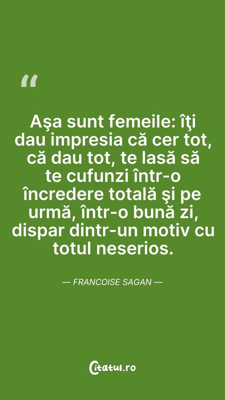 Aşa sunt femeile: îţi dau impresia că cer tot ... Citește tot citatul >
