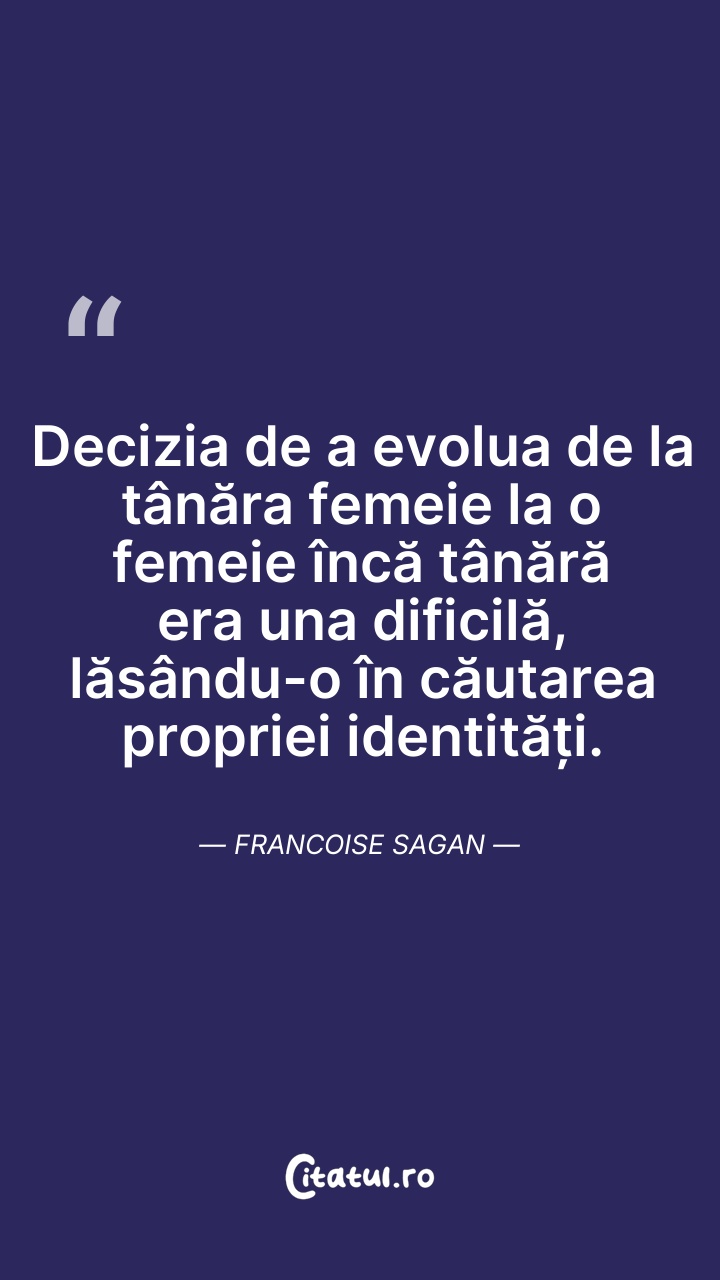 Decizia de a evolua de la tânăra femeie la o ... Citește tot citatul >