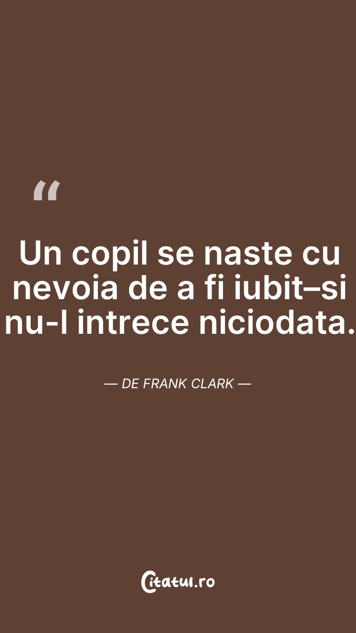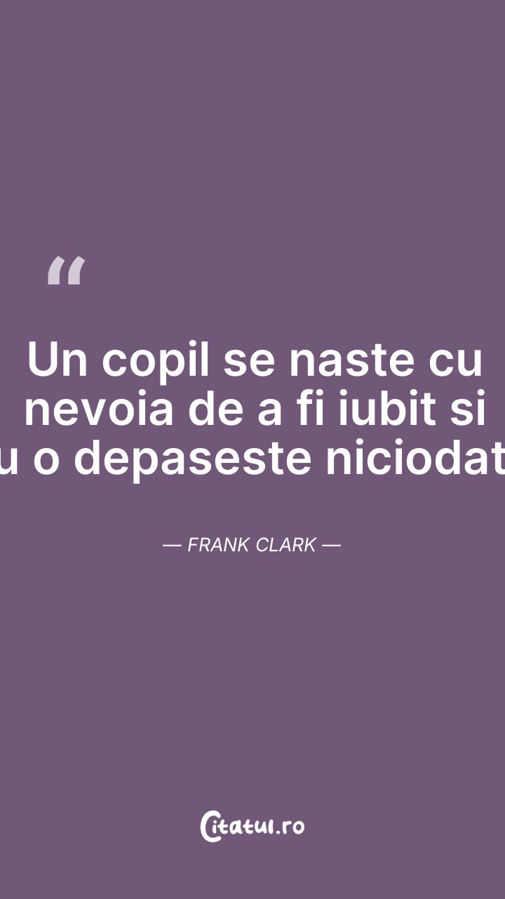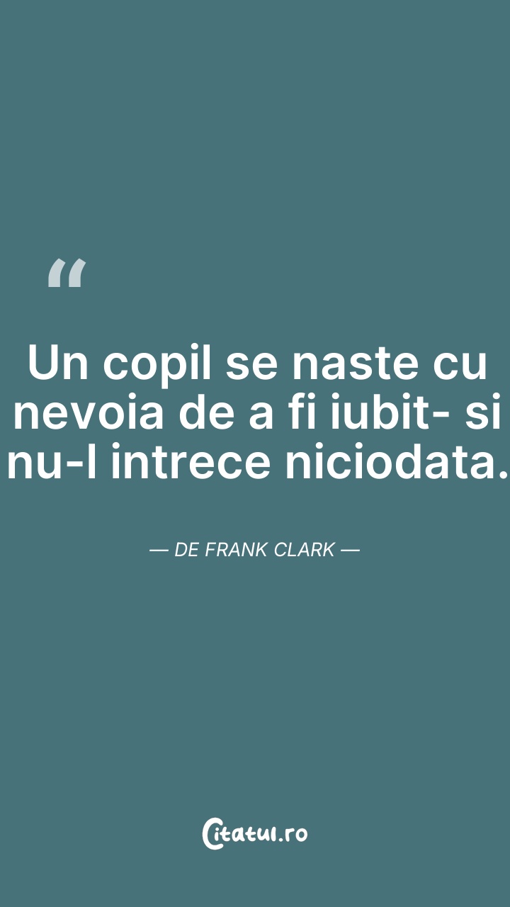 Un copil se naste cu nevoia de a fi iubit si ... Citește tot citatul >