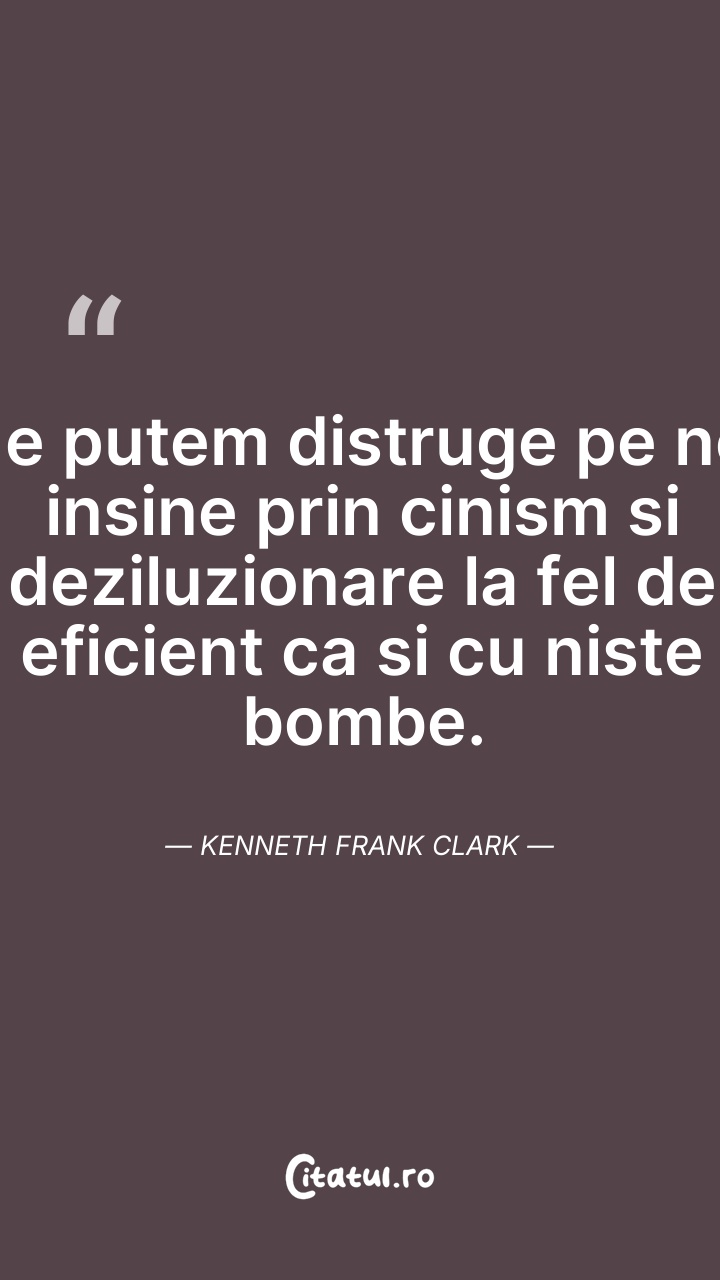 Ne putem distruge pe noi insine prin cinism s ... Citește tot citatul >