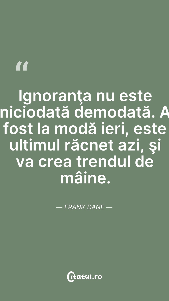 Ignoranţa nu este niciodată demodată. A fost ... Citește tot citatul >