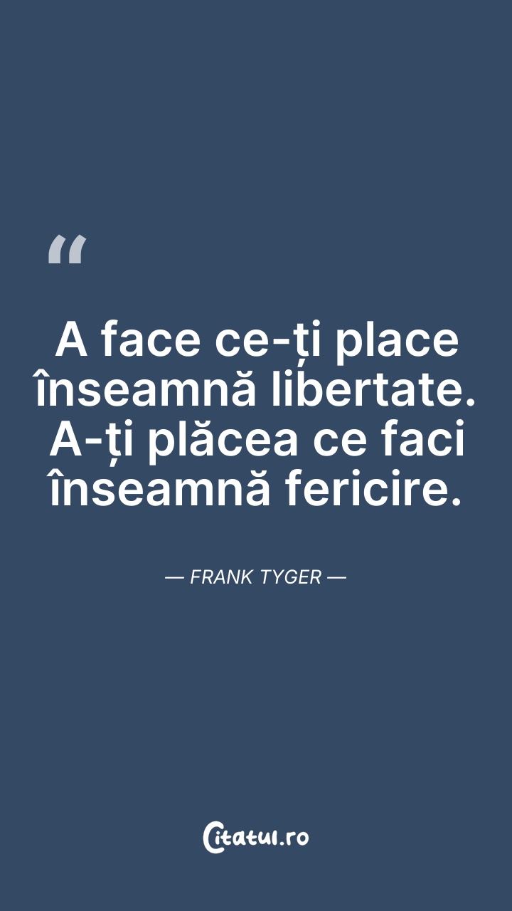 A face ce-ți place înseamnă libertate. A-ți p ... Citește tot citatul >