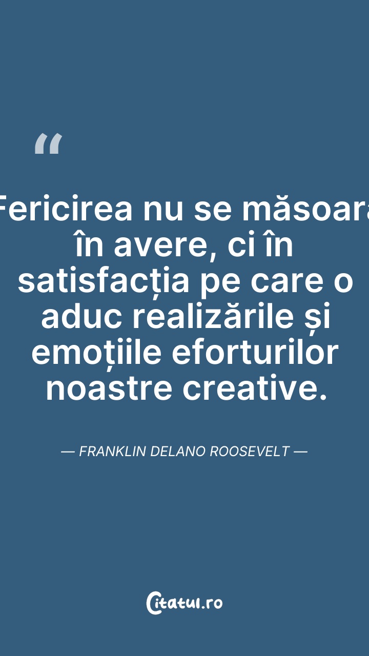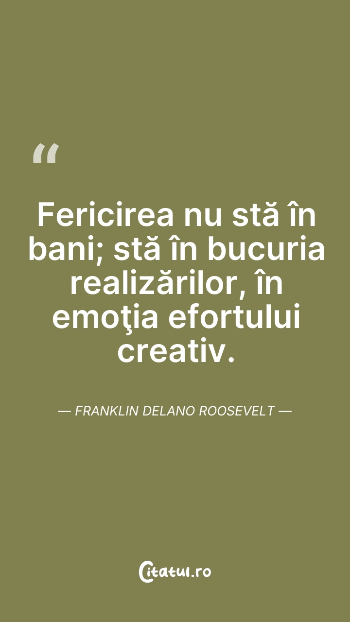 Fericirea nu stă în bani; stă în bucuria real ... Citește tot citatul >