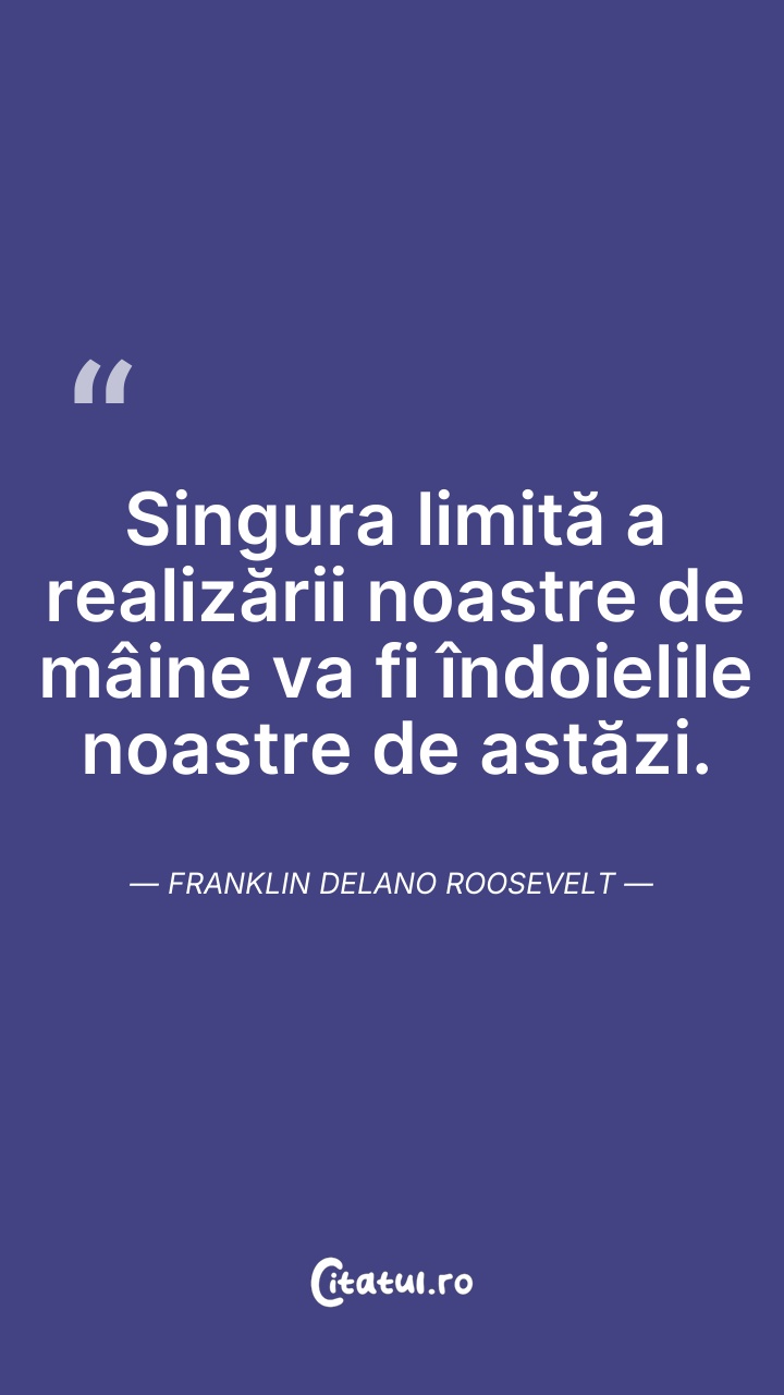 Singura limită a realizării noastre de mâine ... Citește tot citatul >