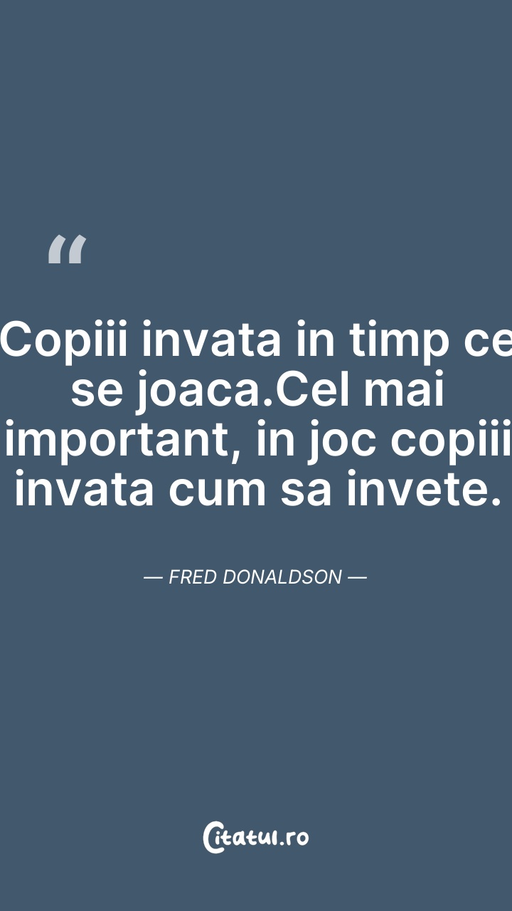 Copiii invata in timp ce se joaca.Cel mai imp ... Citește tot citatul >