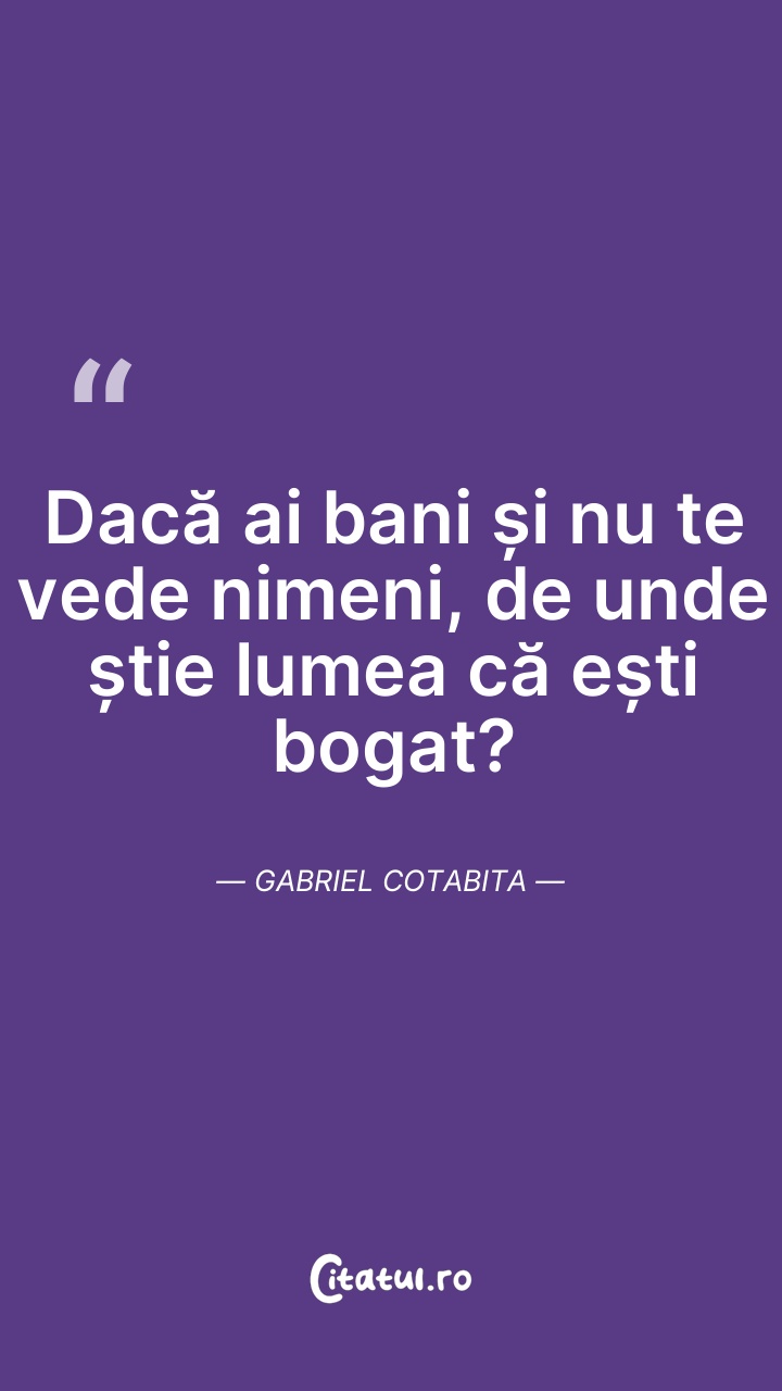 Dacă ai bani și nu te vede nimeni, de unde șt ... Citește tot citatul >